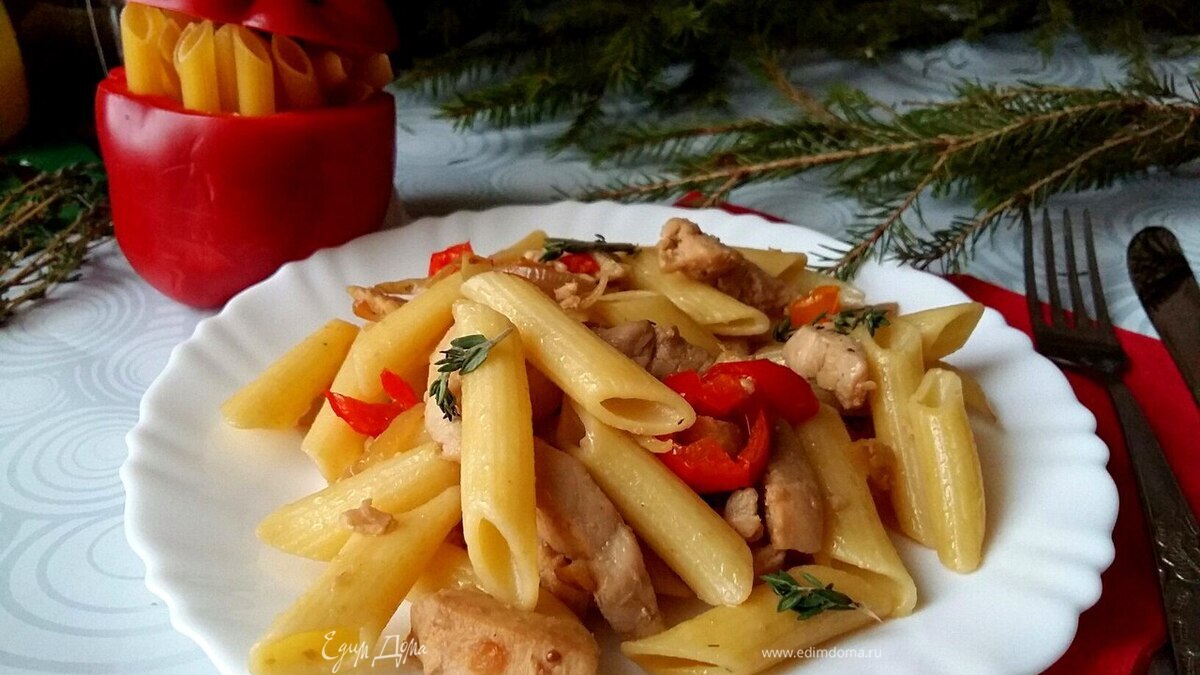 Пенне с курицей и болгарским перцем