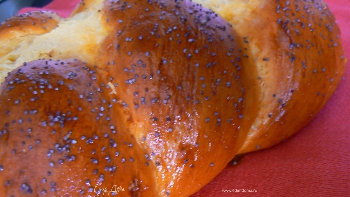 Тесто выложить на присыпанный мукой стол и хорошо придавить руками, чтобы вышел воздух, но не месить. Тесто разделить на 3 равные части. Из каждой части руками (как из пластилина) сделать жгут длиной примерно 25 см. Застелить протвень бумагой для выпечки и положить жгуты из теста на протвень. Из жгутов сделать "косичку", концы заправить вниз, под тесто. Накрыть тесто пищевой пленкой и снова дать подйти, тесто должно увеличиться в размере примерно в 2 раза. Нагреть духовку до 180. Взбить яйцо и аккуратно смазать халу яйцом и посыпать маком. Выпекать в предварительно нагретой духовке 20-25 минут. Остудить на решетке.
