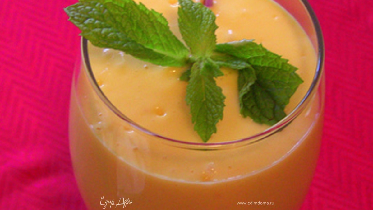 Смешайте йогурт с остальными компонентами, кроме льда и мяты, в электросмесителе или в кухонном процессоре с металлической насадкой.