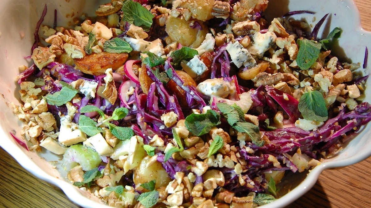 Картофельный салат с красной капустой, сельдереем и голубым сыром