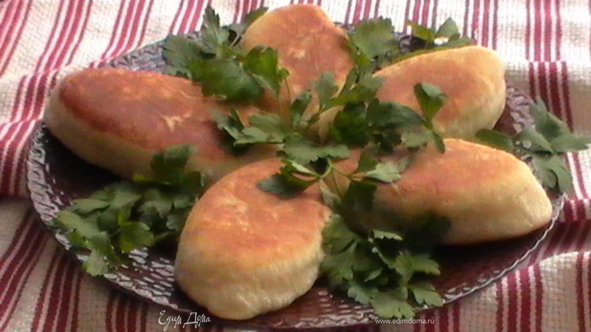 Раскатываем тесто толщиной 0,5 см, вырезаем чашкой кружки, кладем начинку, зашипываем края и отправляем пирожок на разогретую сковороду. Жарим до готовности с обеих сторон.