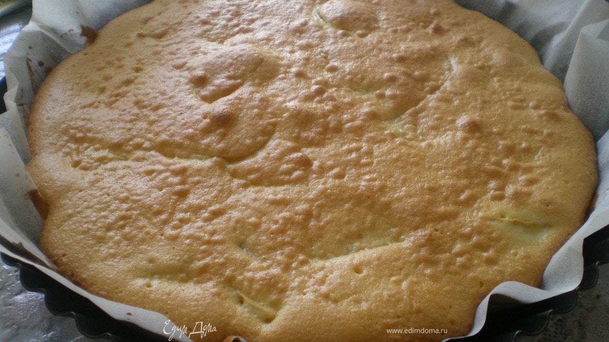 Яйца разбить в миску и взбить миксером в пышную пену. Не прекращая взбивать, тонкой струйкой всыпать сахар и прекратить взбивать. В яичную массу ввести просеянную муку и аккуратно перемешать.