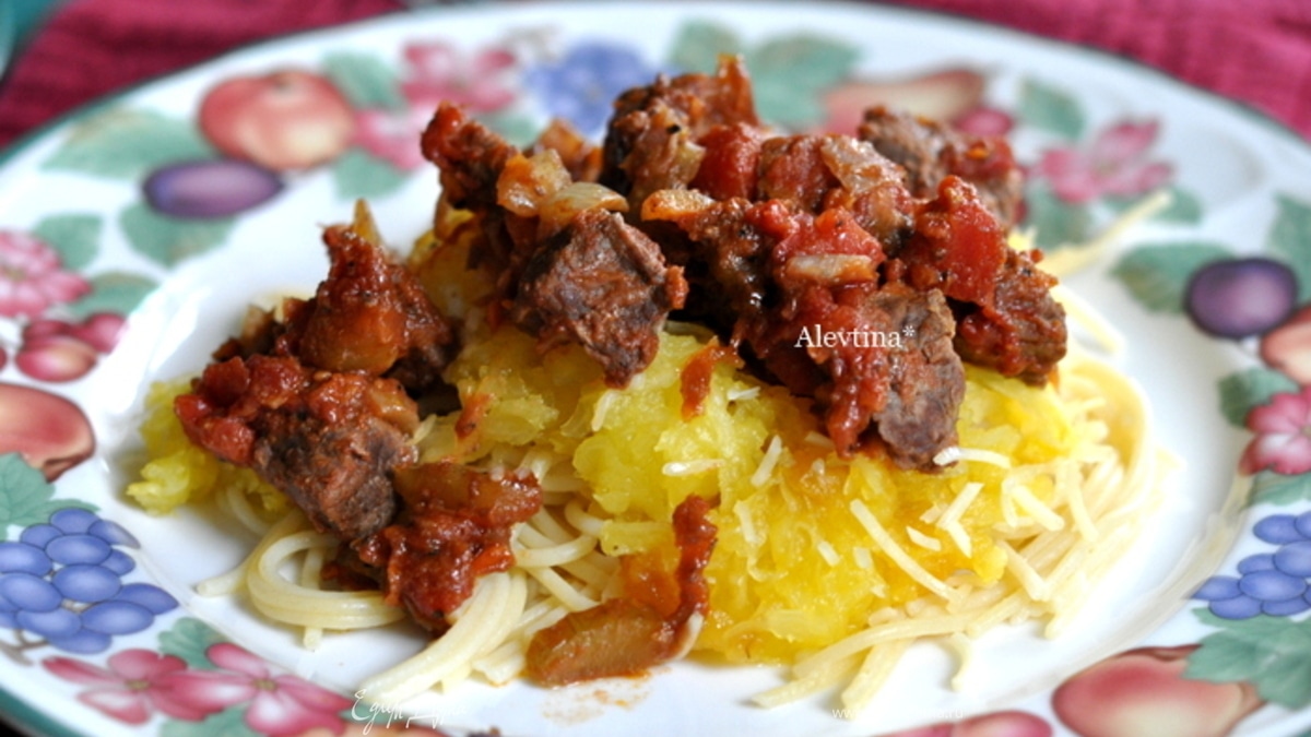 Мясное рагу с тыквой спагетти