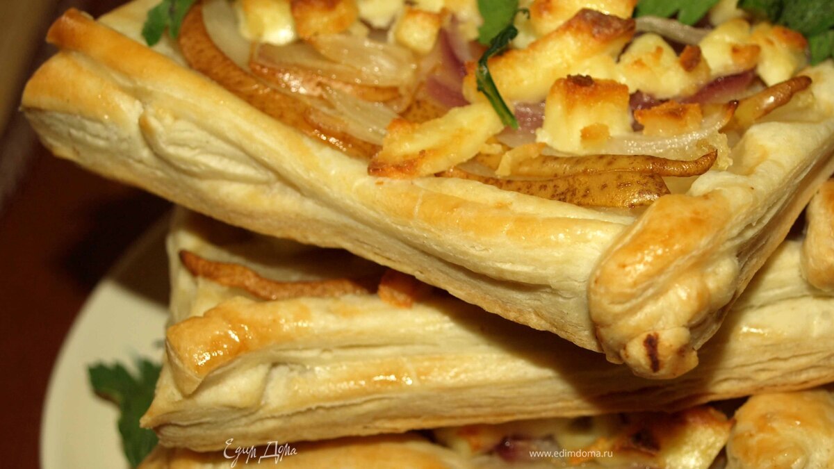 Слойки с грушей, ялтинским луком и адыгейским сыром
