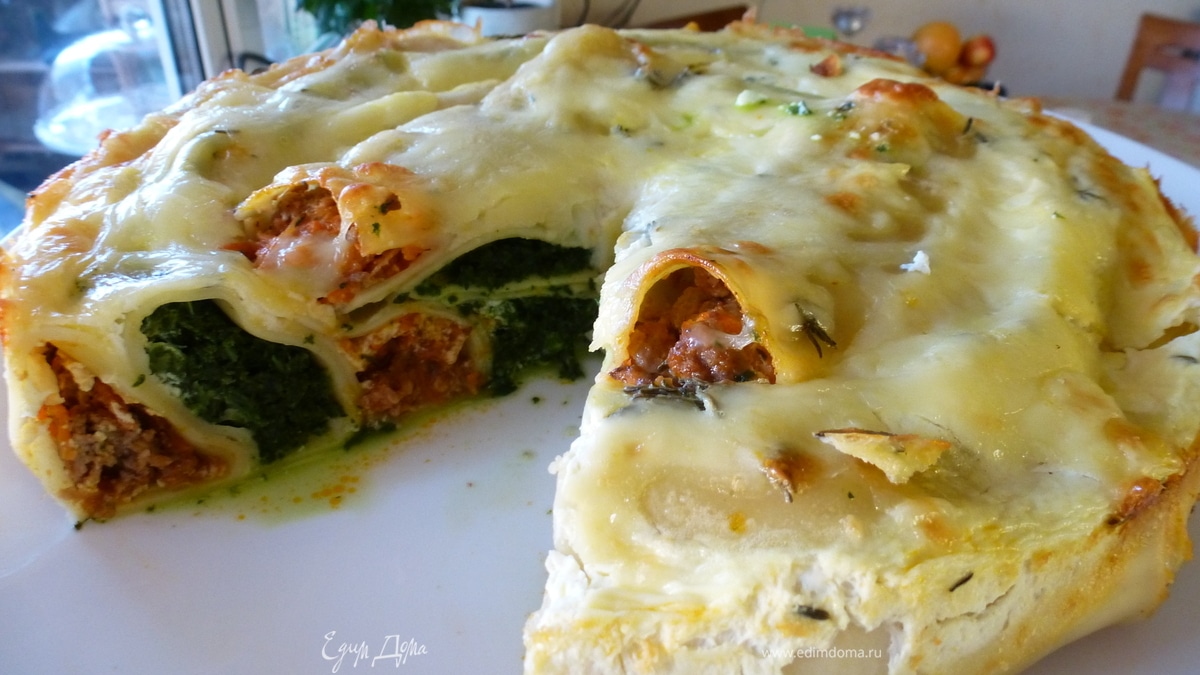 Пирог из каннеллони с мясом и шпинатом