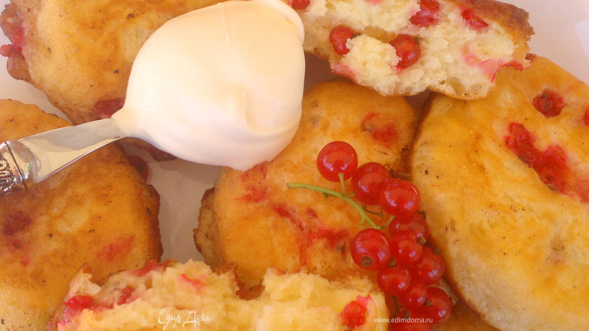 Оладьи дрожжевые с красной смородиной