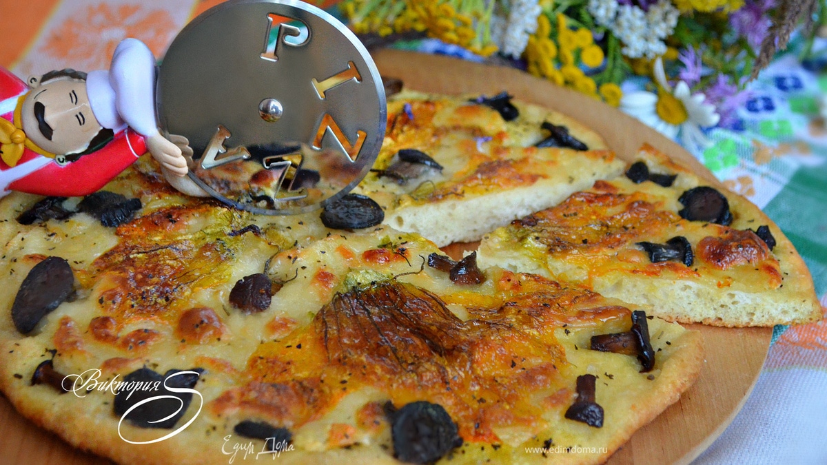 Пицца с цветками цукини и лесными грибами