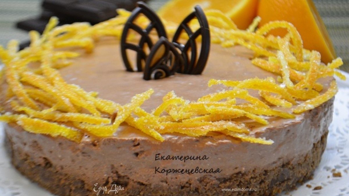 Снять борта у формы и украсить засахаренной цедрой и шоколадом. Приятного аппетита!
