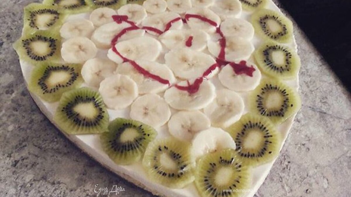 Вынимаем из формы или снимаем борт. Приступаем к украшению) Тут уже как работает ваша фантазия=) Я украсила фруктами и джем-маркером. Приятного аппетита!