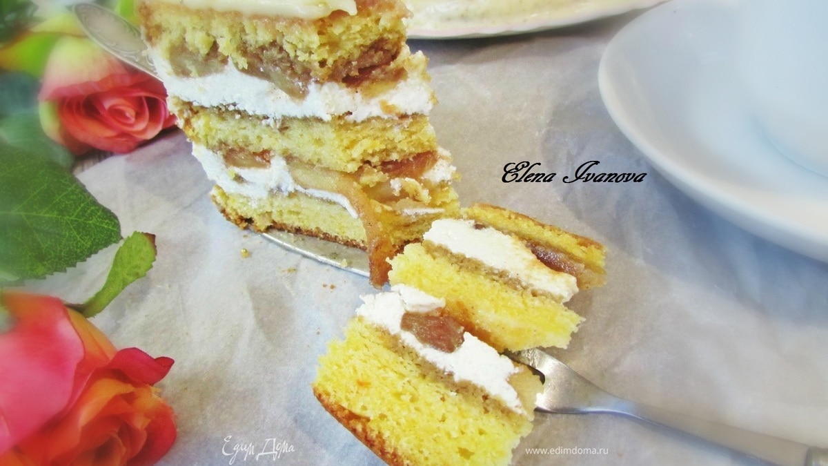 Какой же праздник без вкусного домашнего торта? Торты я пеку очень редко, как-то не складываются у меня добрые отношения с этой выпечкой. Но сегодня все получилось, поэтому спешу поделиться рецептом этого удивительного и необычного на вкус торта. Почему необычного? — спросите вы. Дело в том, что бисквит для торта я пекла с добавление майонеза. Кто бы мог подумать, что получится такой великолепный бисквит. А воздушный манный крем в сочетании с карамелизированными яблочками делают этот торт удивительно ярким, праздничным и очень вкусным!